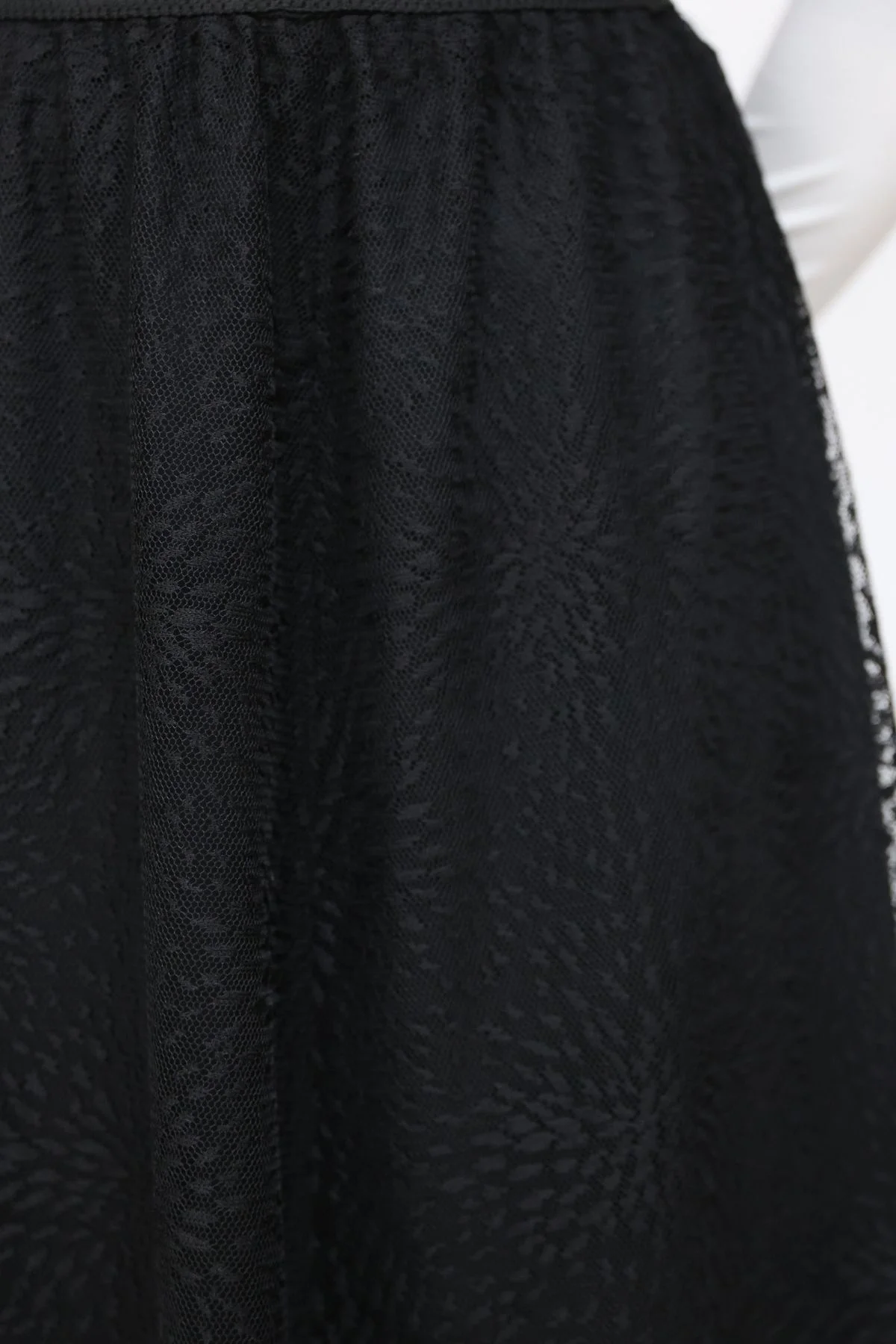Asimetrik Kesim Lastikli Dantel Etek 6002E-Siyah