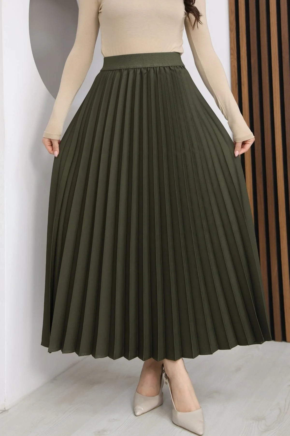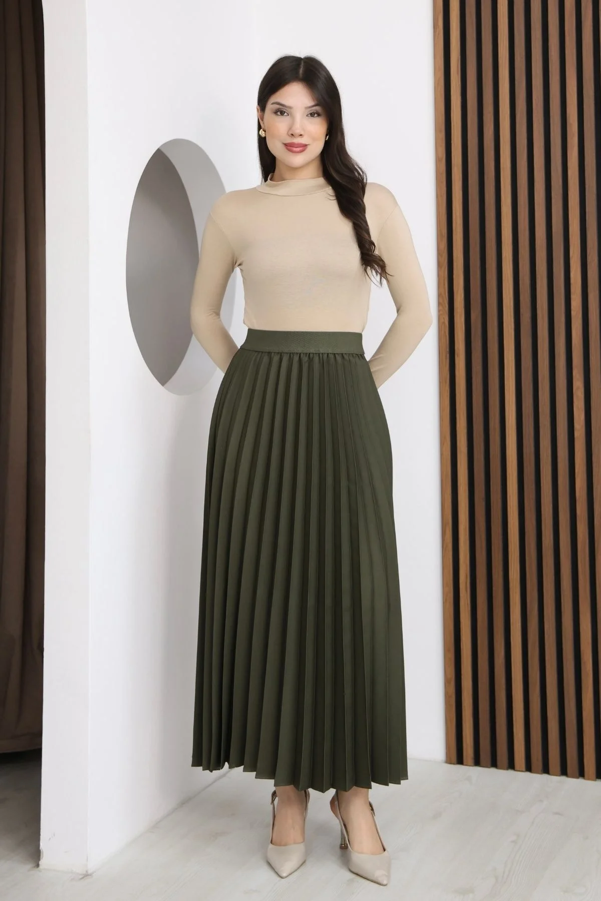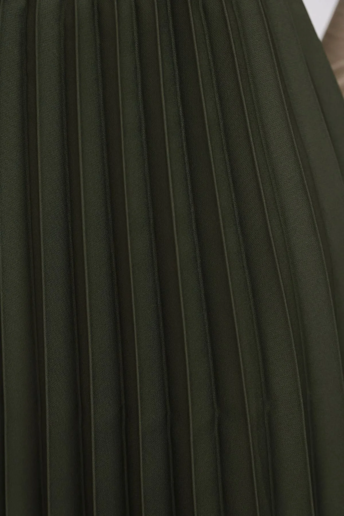 Beli Lastikli Piliseli Etek 6017-Haki