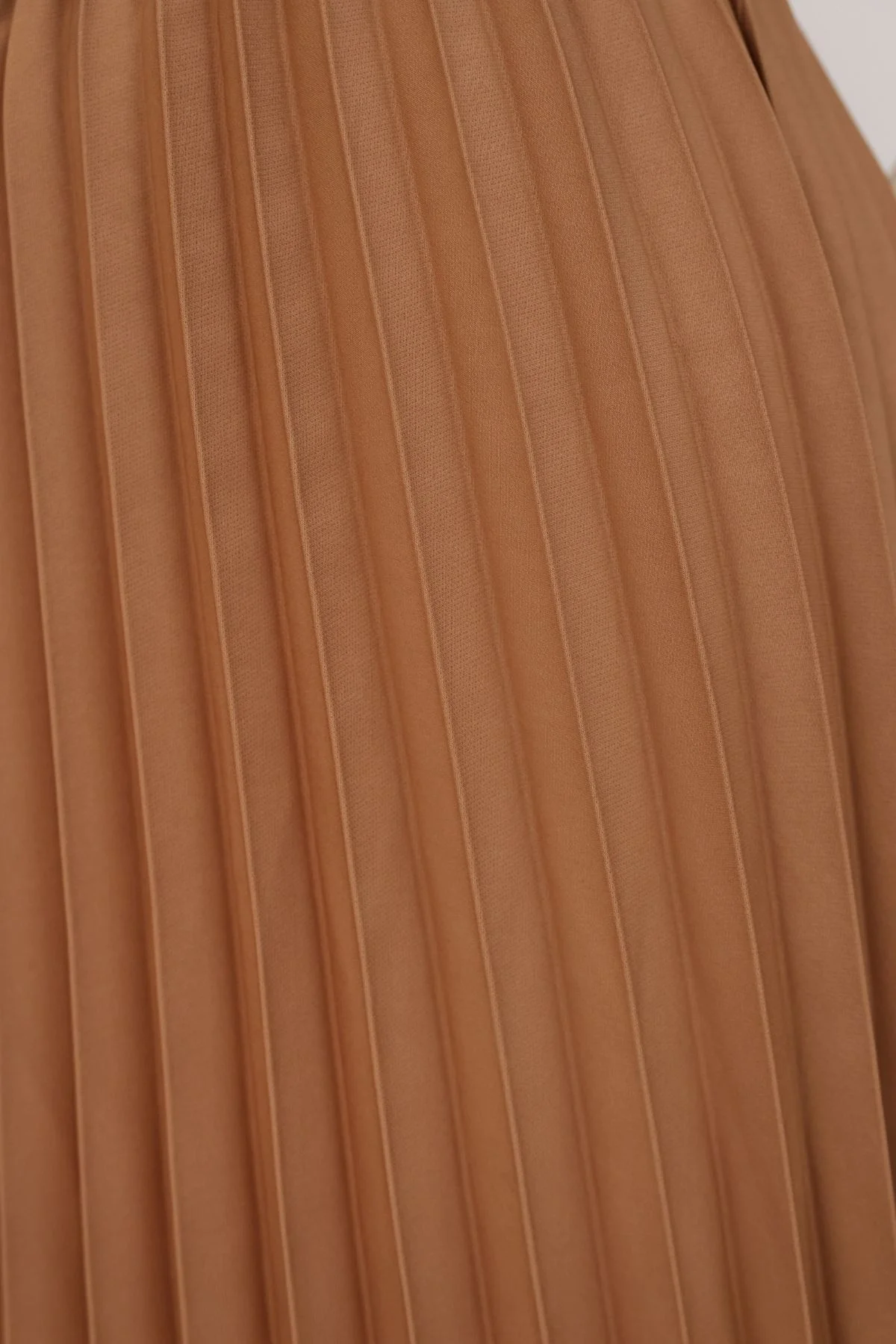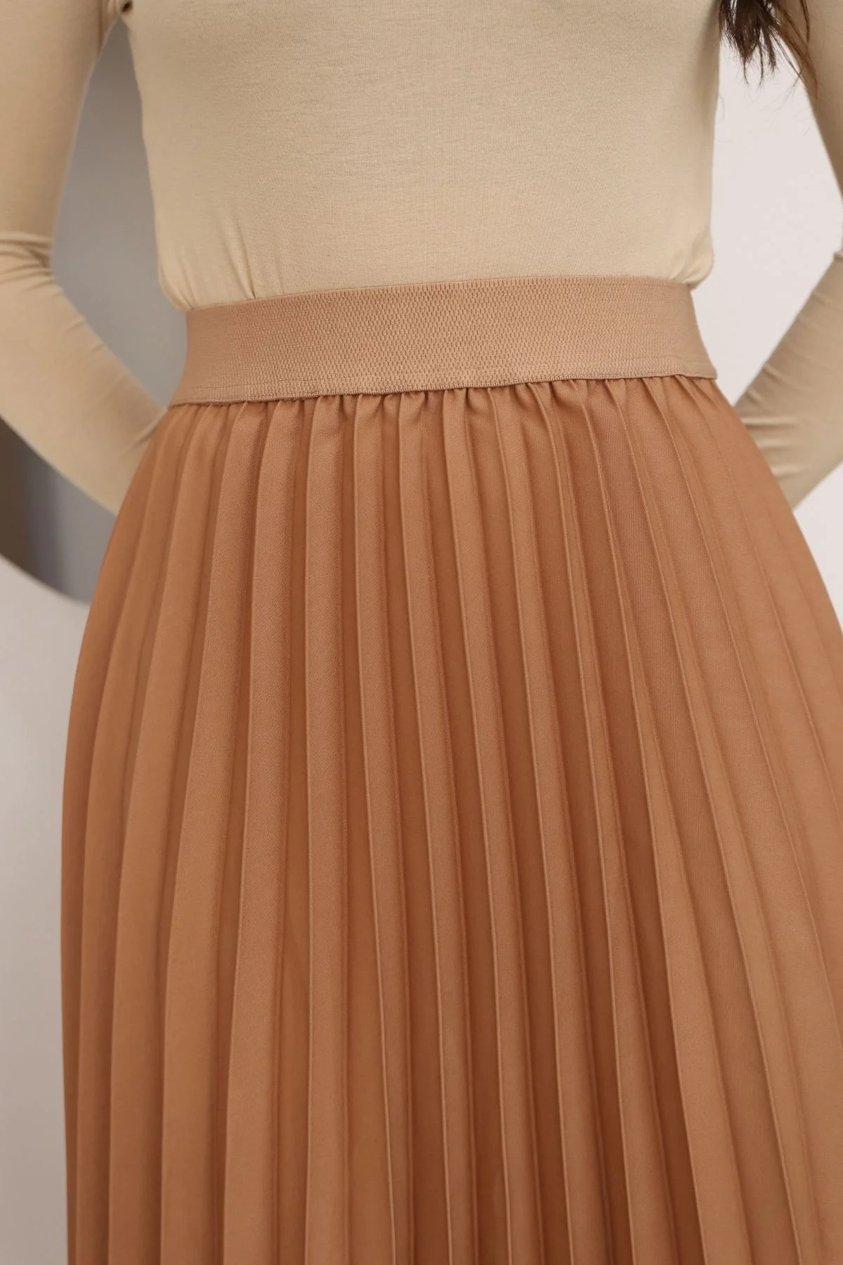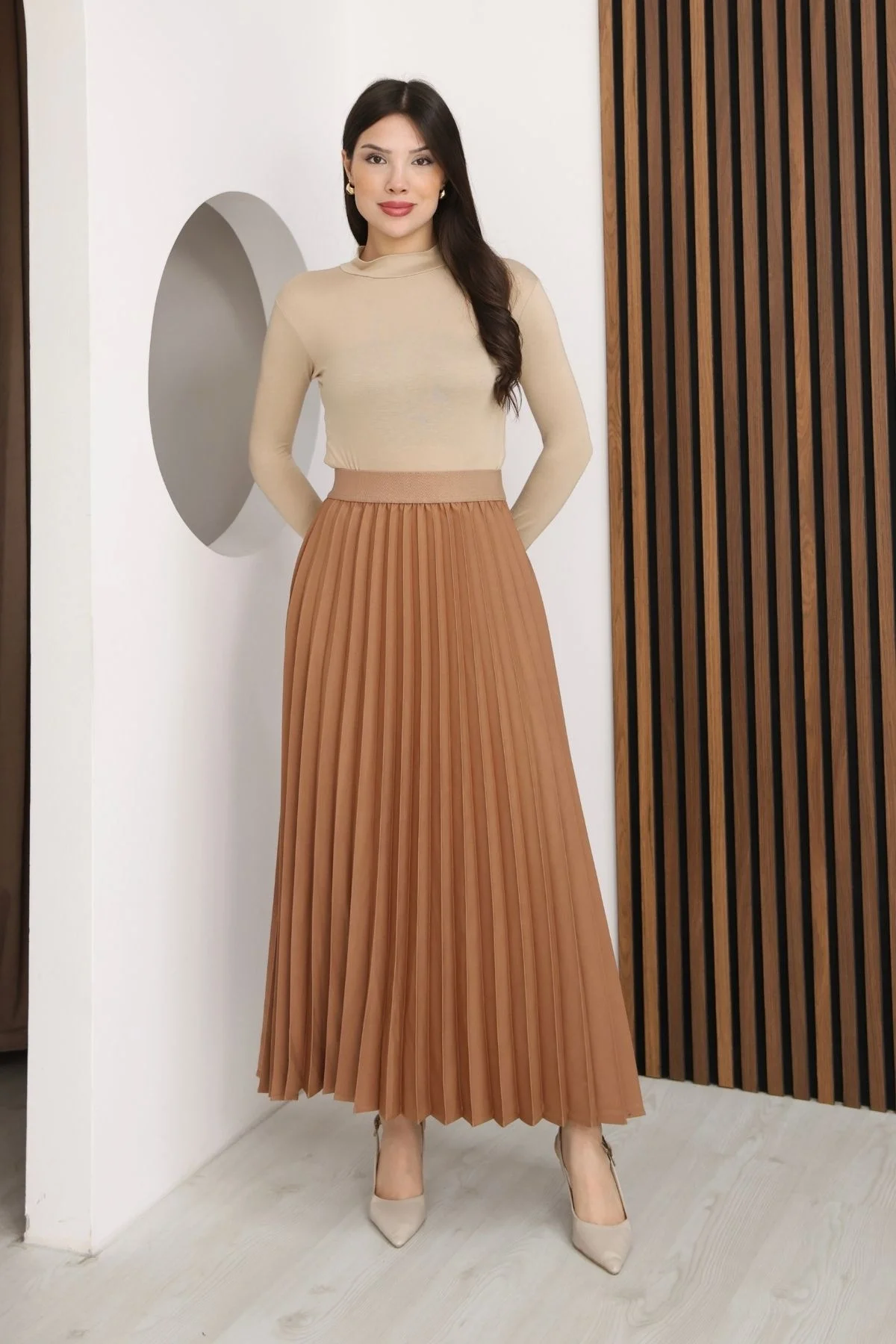 Akışkan piliseleri ve rahat kalıbıyla bu etek, hem şık görünmek hem de rahat hissetmek isteyenler için tasarlandı. Bel kısmındaki lastikli yapı vücudu sıkmadan toparlar, dökümlü formu ise silueti daha zarif gösterir.