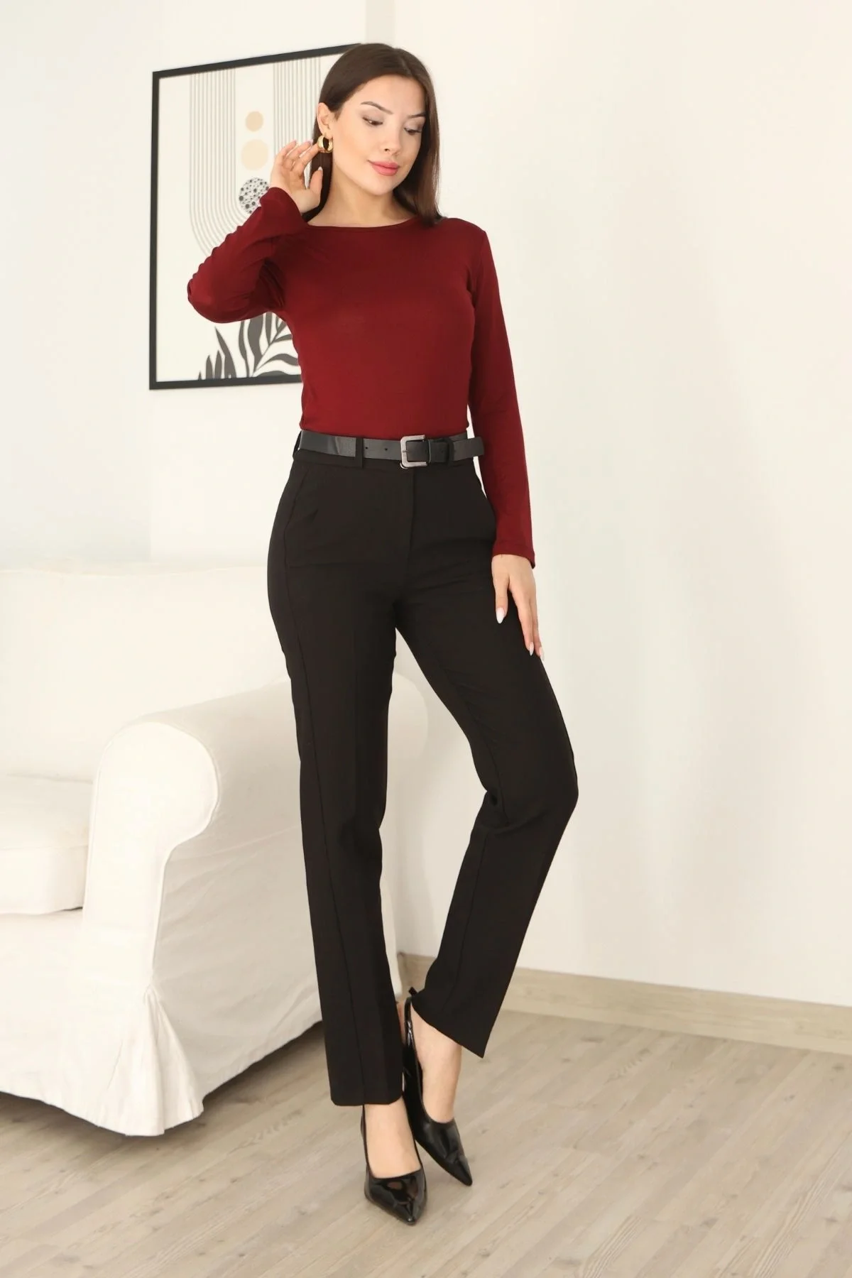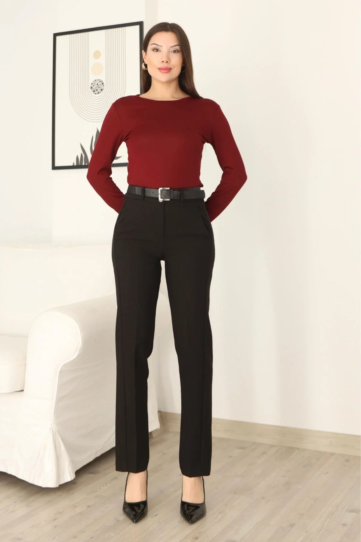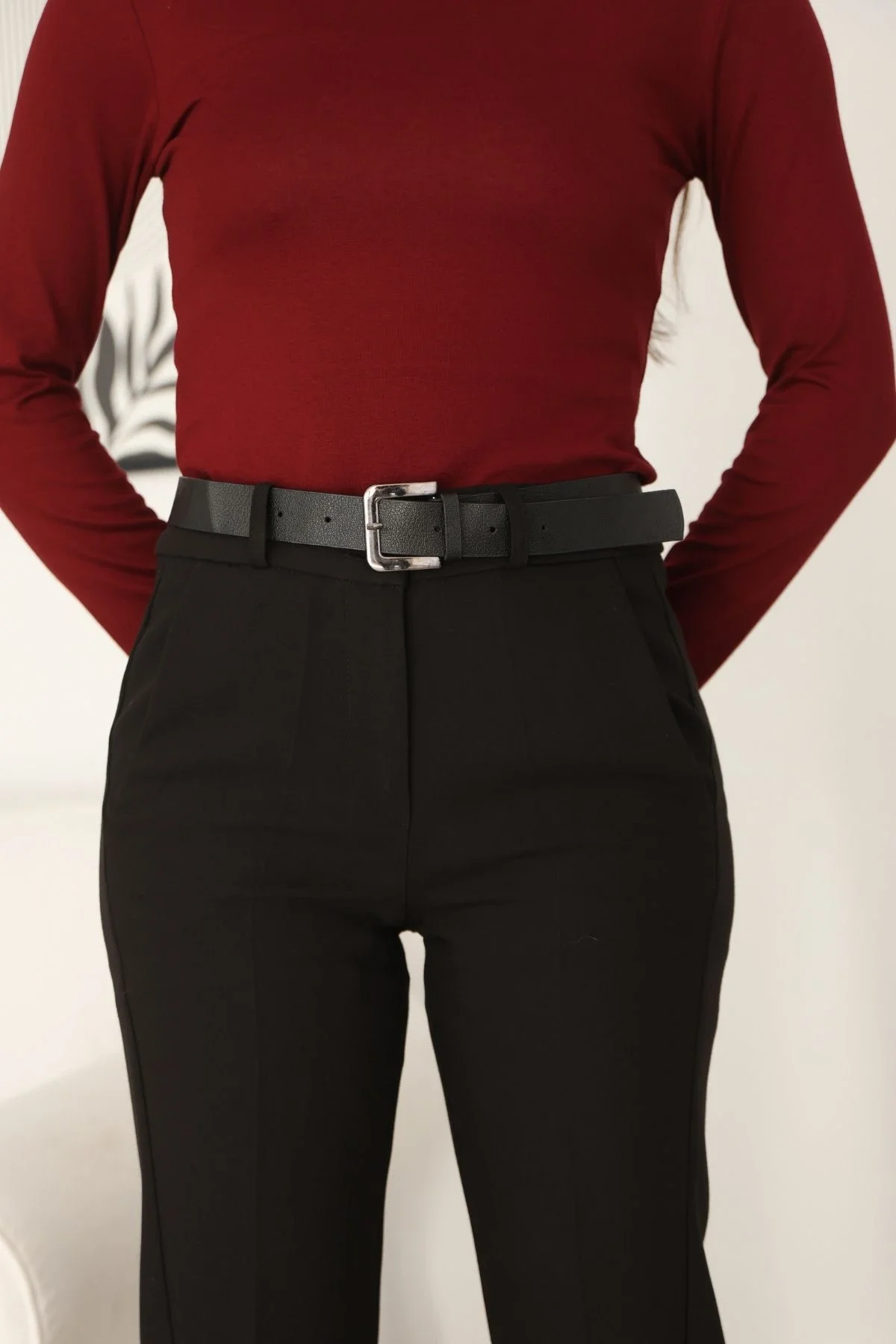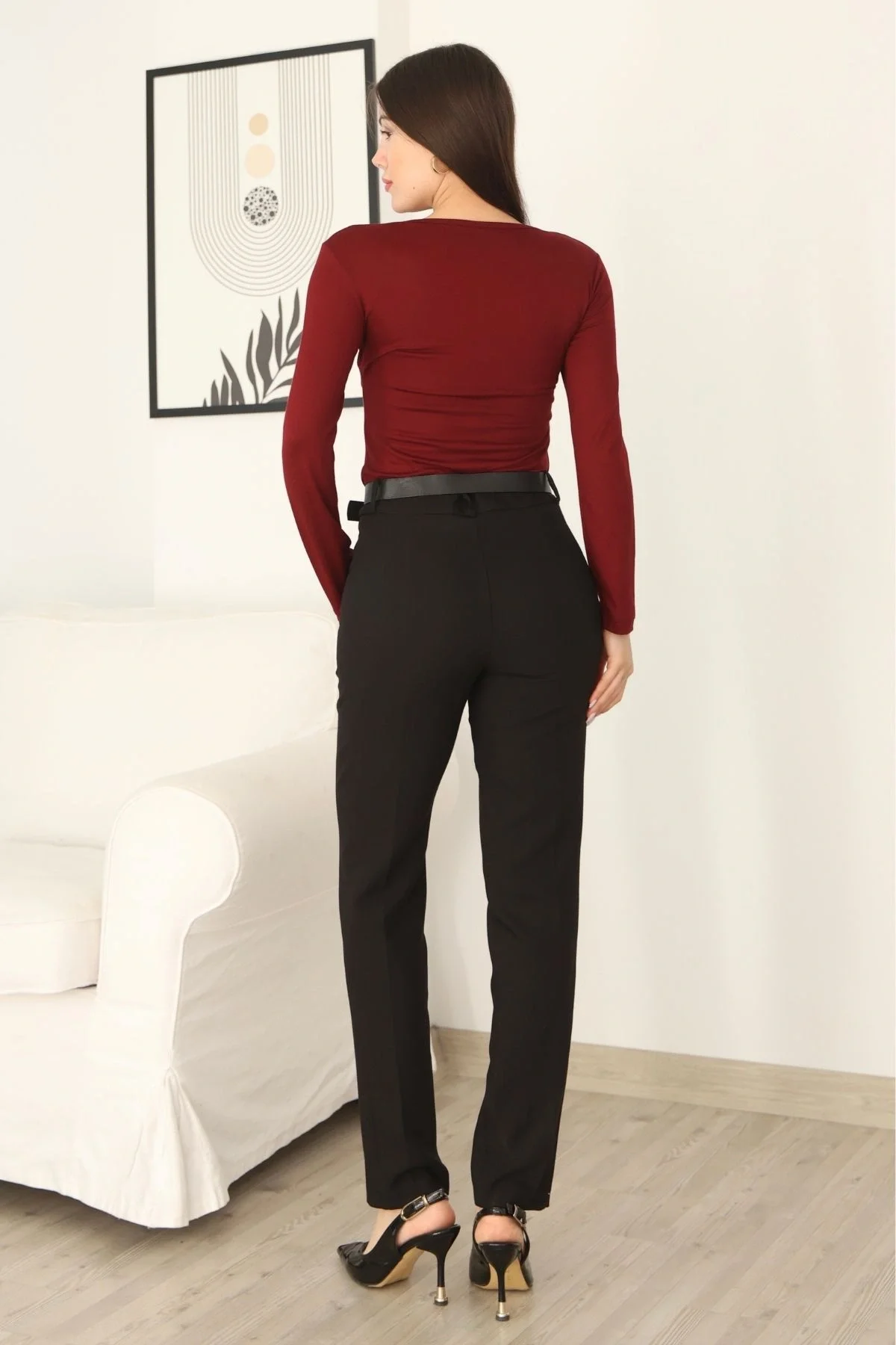 Cep Detaylı Kemerli Pantolon 6210-Siyah