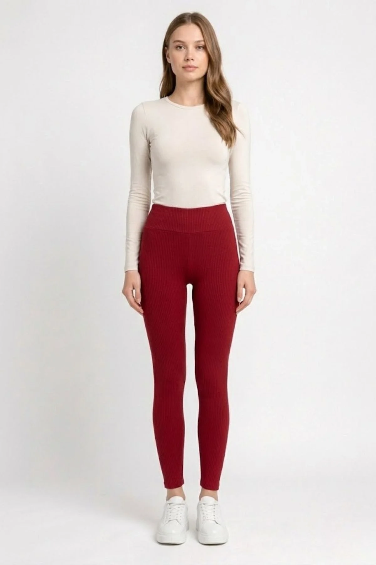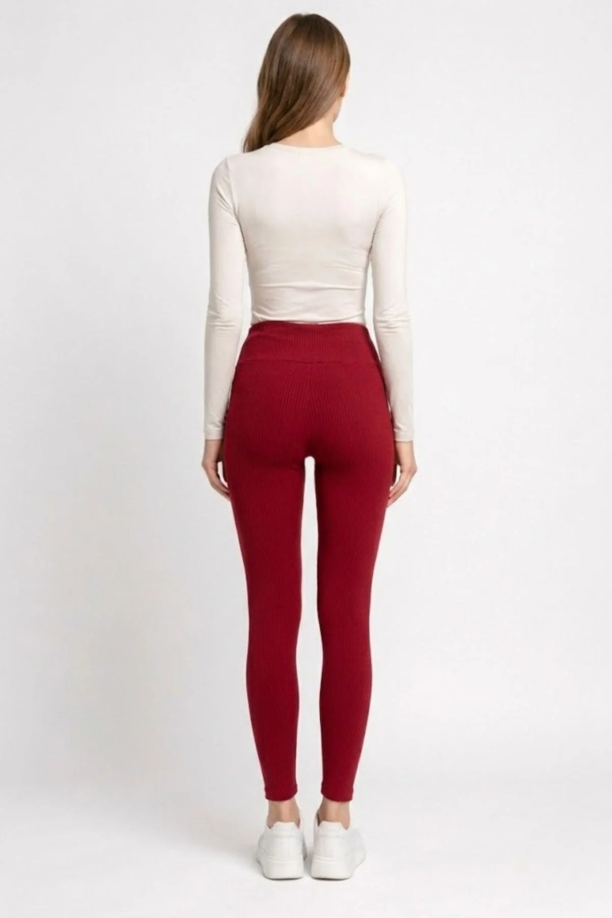 Esnek Fitilli Yüksek Bel Toparlayıcı Kaşkorse Tayt 5011-Kırmızı