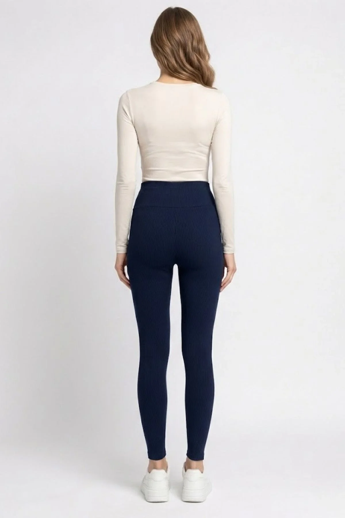 Esnek Fitilli Yüksek Bel Toparlayıcı Kaşkorse Tayt 5011-Lacivert
