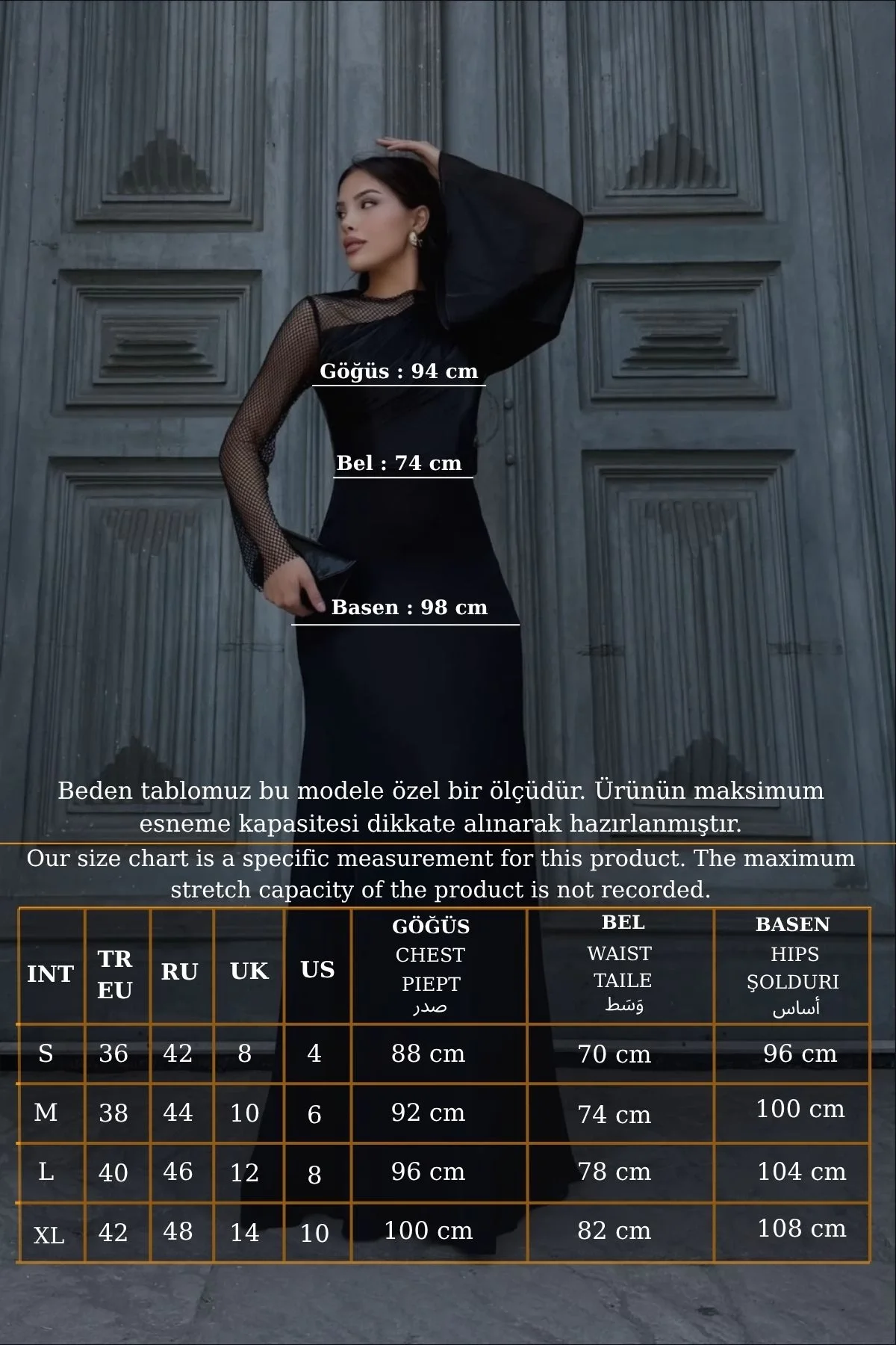 • Boy: Elbise, omuzdan yere 156 cm uzunluğundadır.