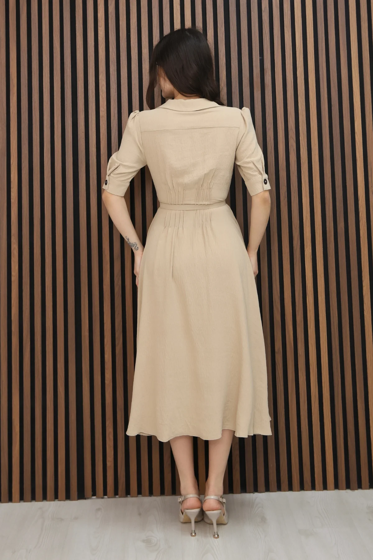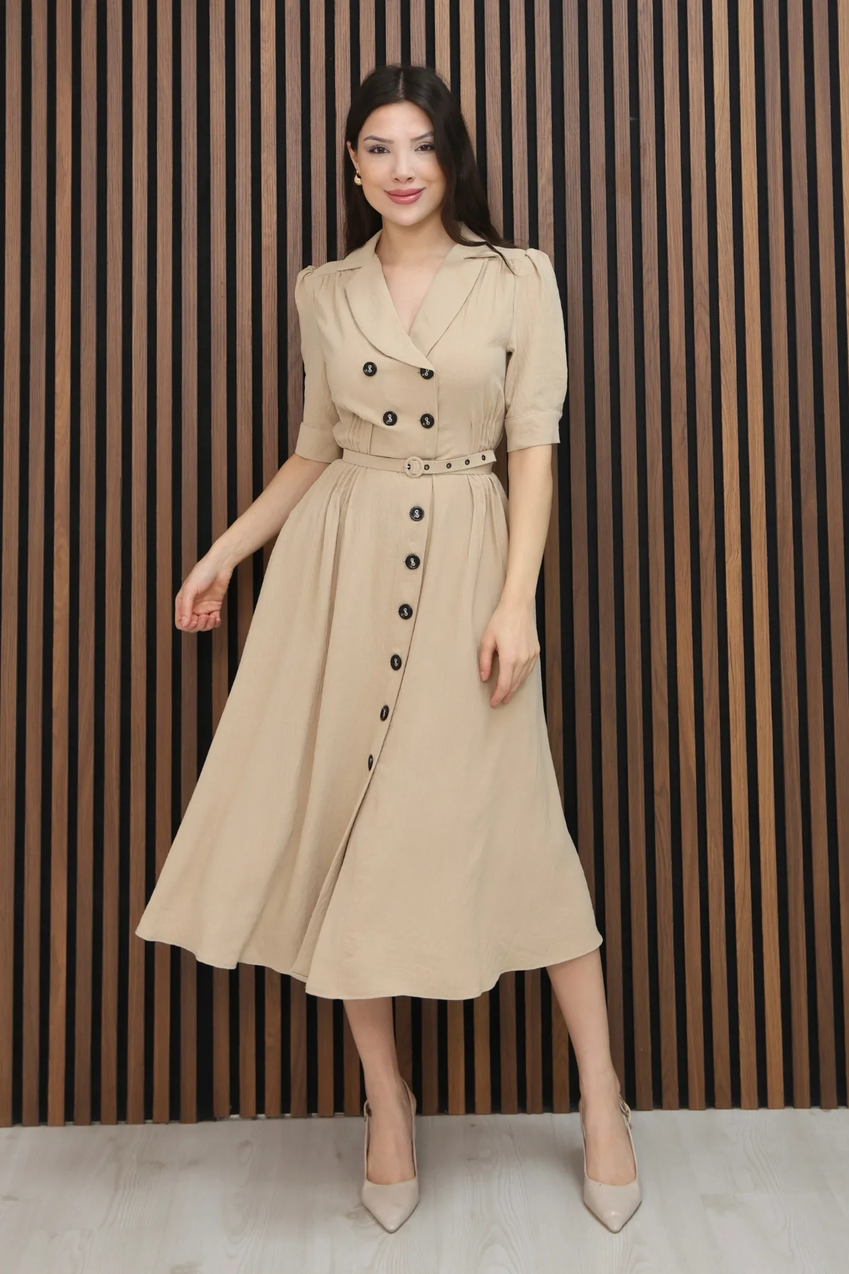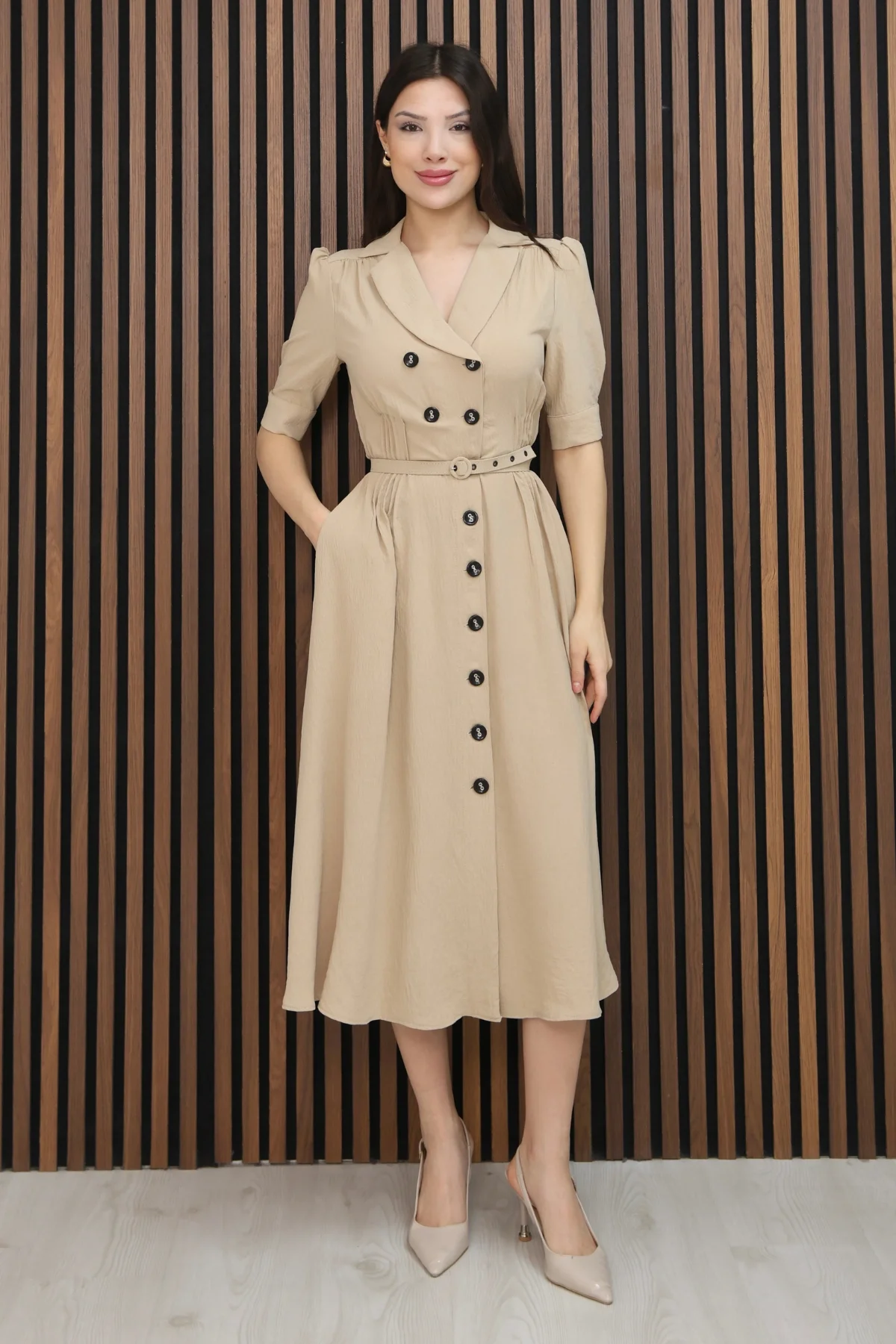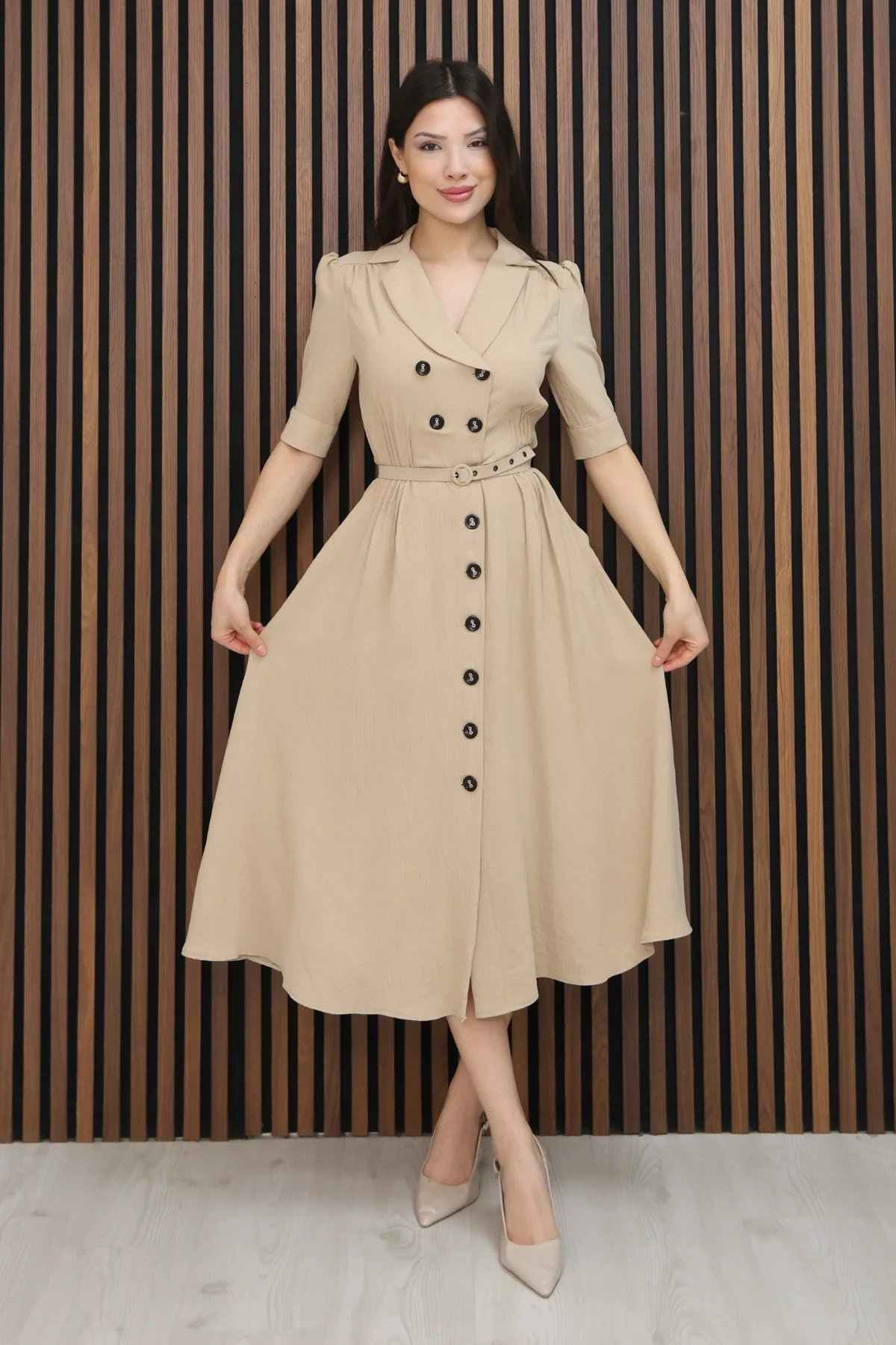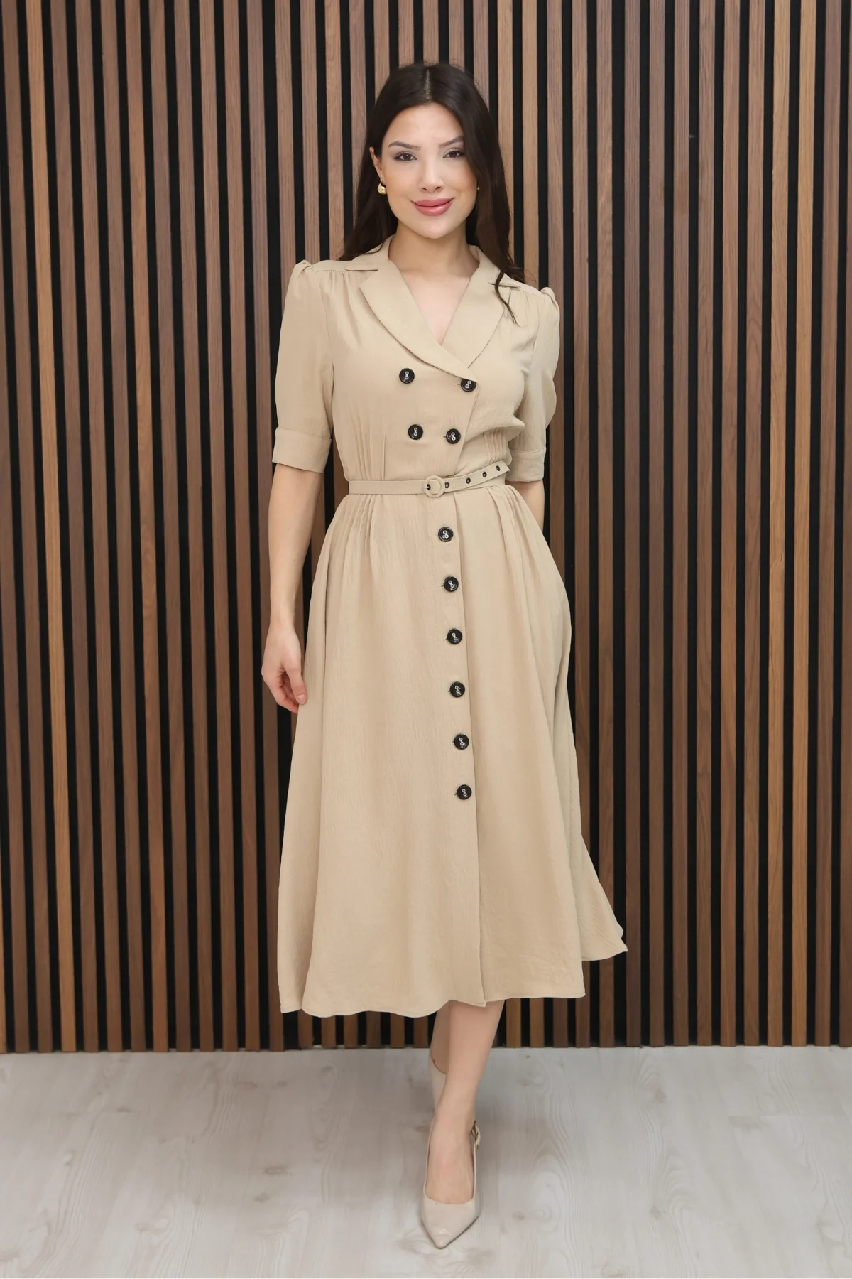 Nursel Ergin Düğme Detaylı Elbise 6059-Bej