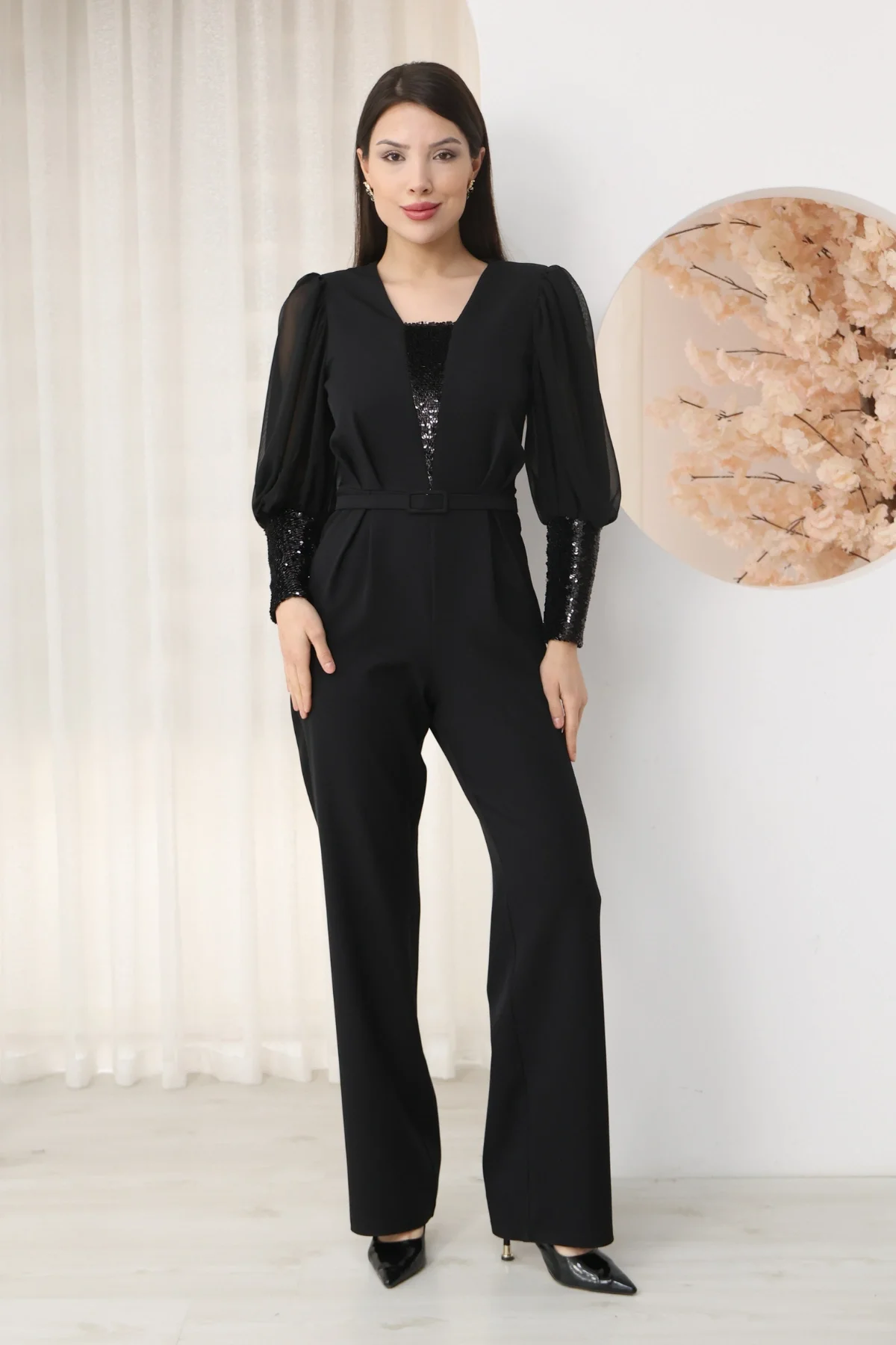 Nursel Ergin Payet Detaylı Abiye Tulum 6056-Siyah