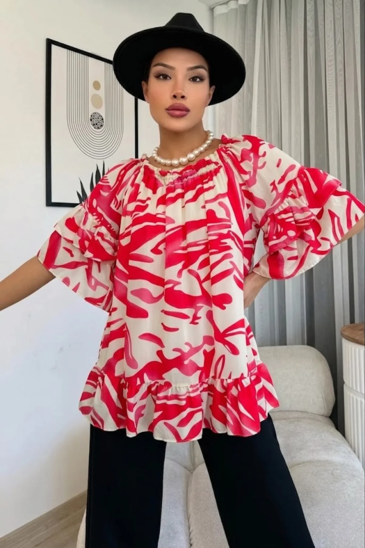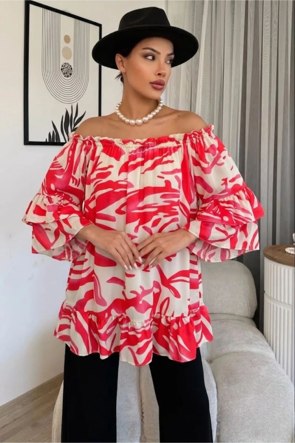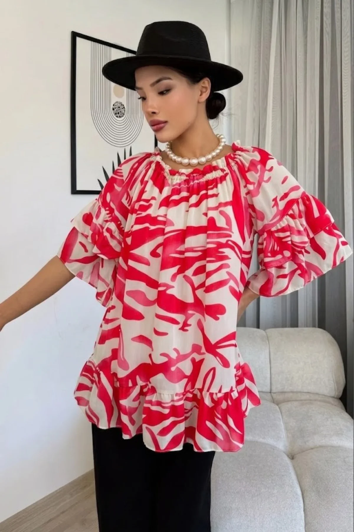 Her an şık ve kendinden emin hissetmek isteyenler için tasarlandı! Bu viskon bluz, zarafeti ve modern tasarımı bir araya getiriyor. İster omuzları açıkta bırakarak çekici bir görünüm yakalayın, ister daha klasik bir görünüm tercih edin, bu bluz her tarza kolayca uyum sağlar. Hafif ve dökümlü kumaşı sayesinde yaz sıcaklarında bile rahatlık sunarken, şık detaylarıyla bakışları üzerinize çekeceksiniz.