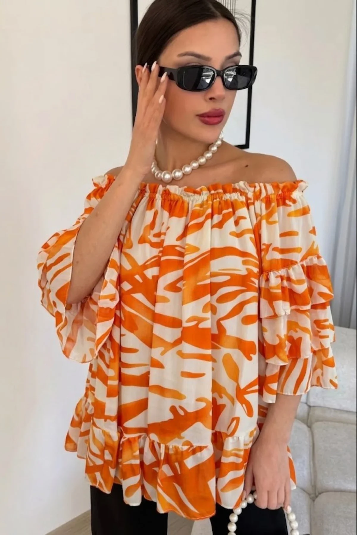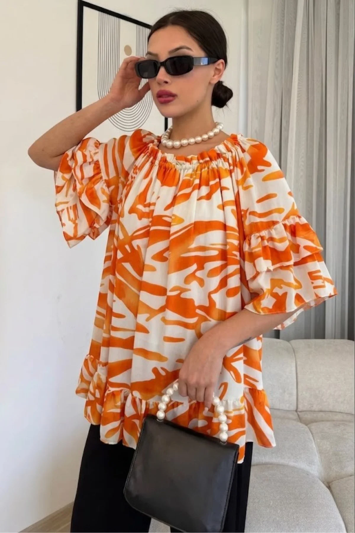 Madonna Yaka Lastikli Viskon Bluz 6020-Oranj