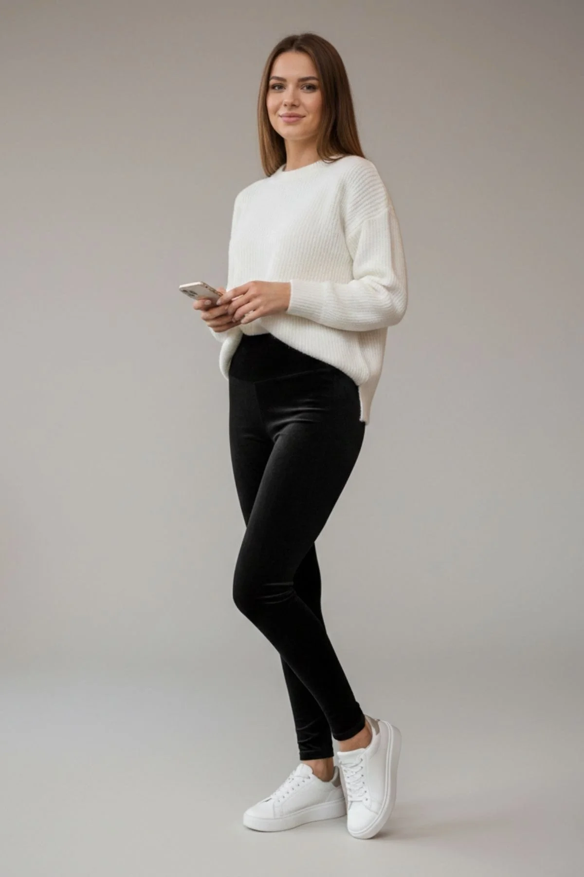 Sadeliğin gücünü yumuşacık bir dokuyla keşfedin! Düz kadife kumaşı sayesinde pürüzsüz bir görünüm sunan bu tayt, hem spor hem de şık kombinlerinizin anahtar parçası olacak. Klasik fitilli dokulardan farklı olarak daha modern ve sade bir duruş sergiler.